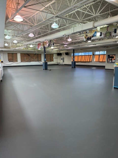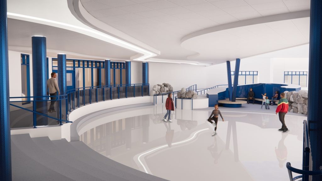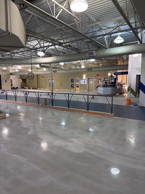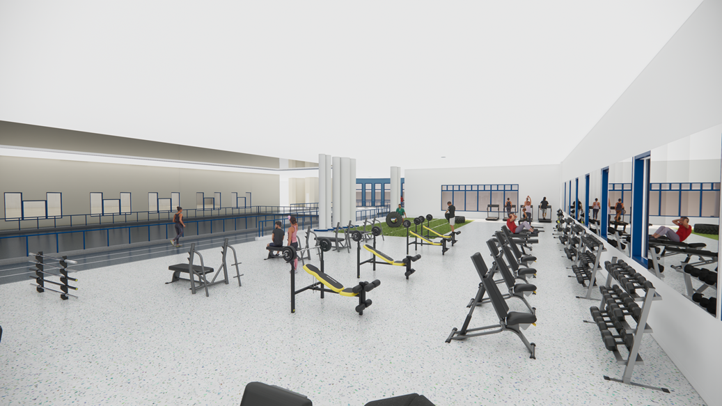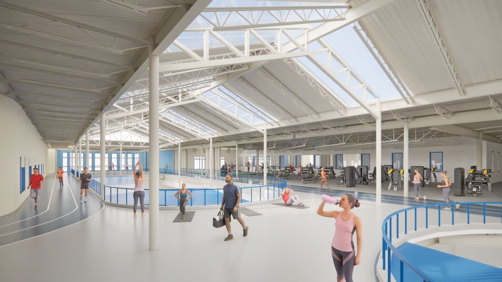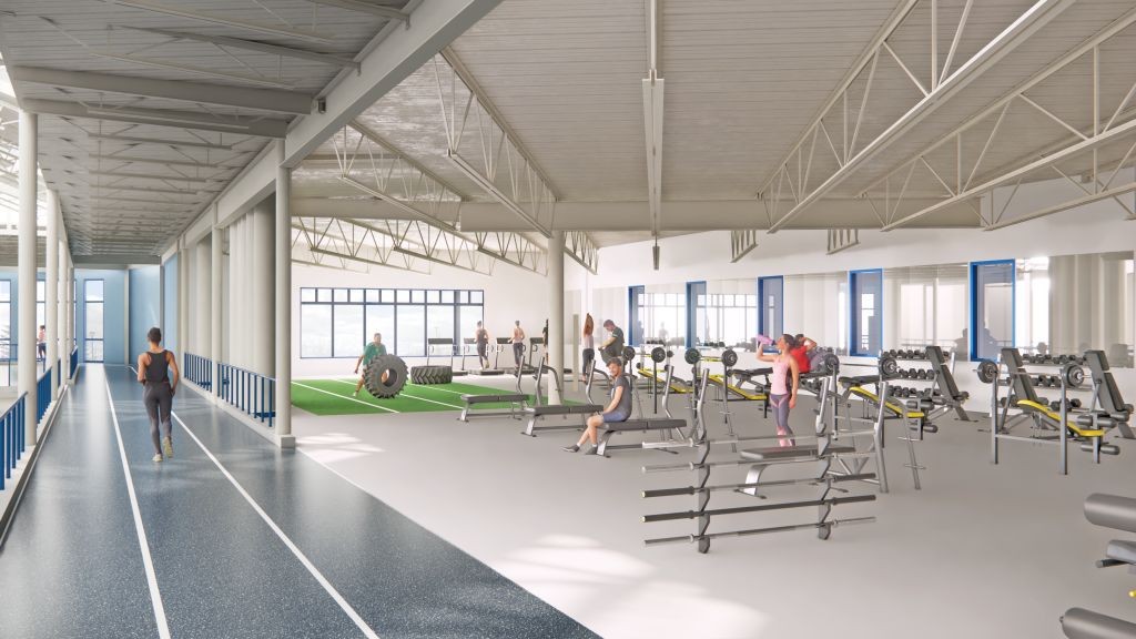 The Fitness Centre will be expanded by approximately 5,000 square feet, extending out over a portion of the space above the current Leisure Ice. This will provide much-needed additional space for individual or small group fitness. The new area will be fully outfitted with new equipment with a focus on functional fitness. The North Fitness area will feature new flooring and configuration, the Running Track will be resurfaced, and the Junior Studio will be renovated and newly outfitted as well.